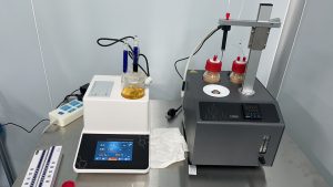3、平衡后將樣品瓶移出,取出樣品,用電子天平稱取樣品置于樣品瓶內,然后在水分儀上點擊開始測量,同時將樣品瓶裝入加熱槽。