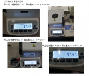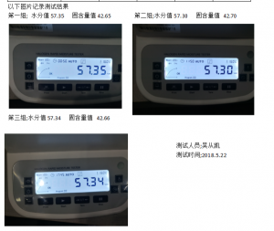 第一組數據為?水分值41.32% ??固含量值58.68%