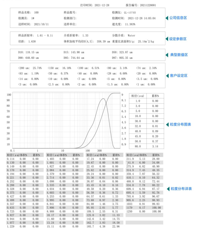 | 自行DIY | 用戶自定義要顯示的數據,根據粒徑求百分比、根據百分比求粒徑或根據 | |