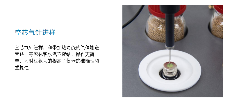 LSDKS-KLEX-KHF卡氏水分測定儀填補了國內空白,采用獨特的針頭設計,一次操作既可以實現載氣輸入,水汽輸出,同時由于新的氣路設計用極小的流量就可以實現水分蒸汽的傳輸,每次進樣只需更換樣品瓶操作方便,無需等待樣品瓶冷卻之后更換瓶蓋。 檢測精度可以達到ppm級,非常適合鋰電、塑料粒子、石化等行業對水分檢測要求高的行業。