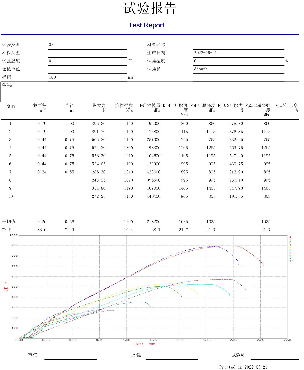 試驗完成后,可點擊工具欄“打印報告”按鈕,打印報告。