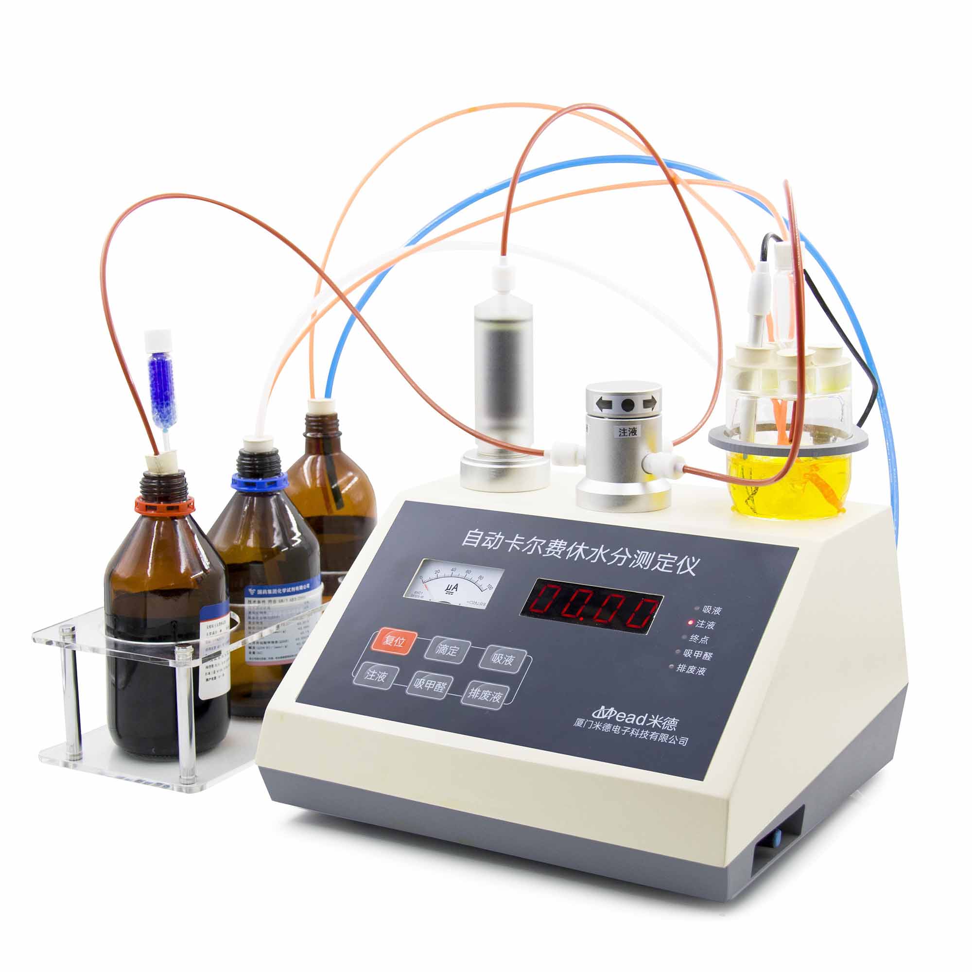 1、按有關功能鍵,儀器可實現:溶劑吸入、測定、終點顯示(報警)、廢液排出、攪拌;
